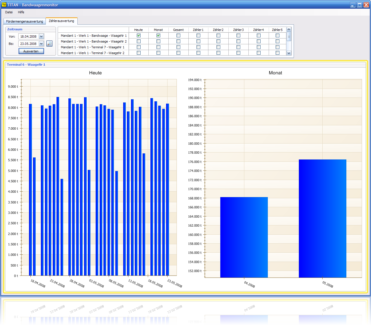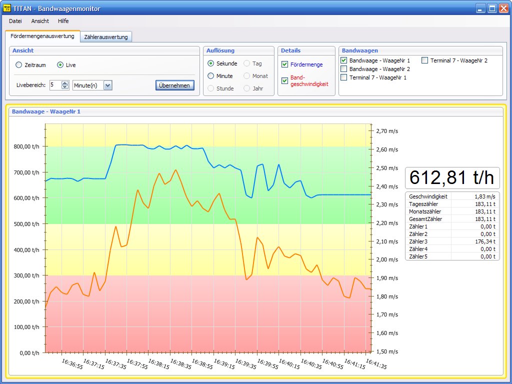Der Bandwaagenmonitor der Firma PAARI erlaubt es die Daten von mehreren Förderbändern in einer Datenbank zusammen zu fassen. Dabei können die Fördermengen der Waagen live angezeigt werden und Engpässe schnell erkannt werden. Die Disposition von Aufträgen in der Zukunft wird erleichtert, da schon bei der Produktion festgestellt werden kann, ob genügend Material zur Verfügung steht. Sollen größere Aufträge abgehandelt werden, kann die Erhöhung der Produktion direkt überwacht werden. Neben diesem Aspekt, kann auch die Wirtschaftlichkeit der Analagen überprüft werden. Arbeitet eine Anlage bestehend aus Baggern, Brechern und Siebanlagen schon am Limit oder evtl. darüber hinaus, müssen früher Wartungen durchgeführt werden, auch der Verschleiß ist deutlich größer. So kann mit Hilfe des Bandwaagenmonitors der wirtschaftlichste und auch umweltverträglichste Arbeitsbereich bestimmt und eingestellt werden. Bewegt sich die Anlage aus dem Bereich heraus, wird dies sofort in der Live-Ansicht mit farblichen Hinterlegungen bekannt gegeben. Auch zusätzliche Alarmsignale können angeschlossen werden. Neben der Live-Ansicht könnne die Daten aus der Datenbank auch nachträglich betrachtet und ausgewertet werden, so sind Zähler für den Tag, Monat, Jahr und individuell konfigurierbare Zähler integriert. Durch die Anbindung an das CRM-Programm titan libra können auch Stammdaten und Aufträge sowie Lieferscheine und vieles mehr direkt verwaltet werden.