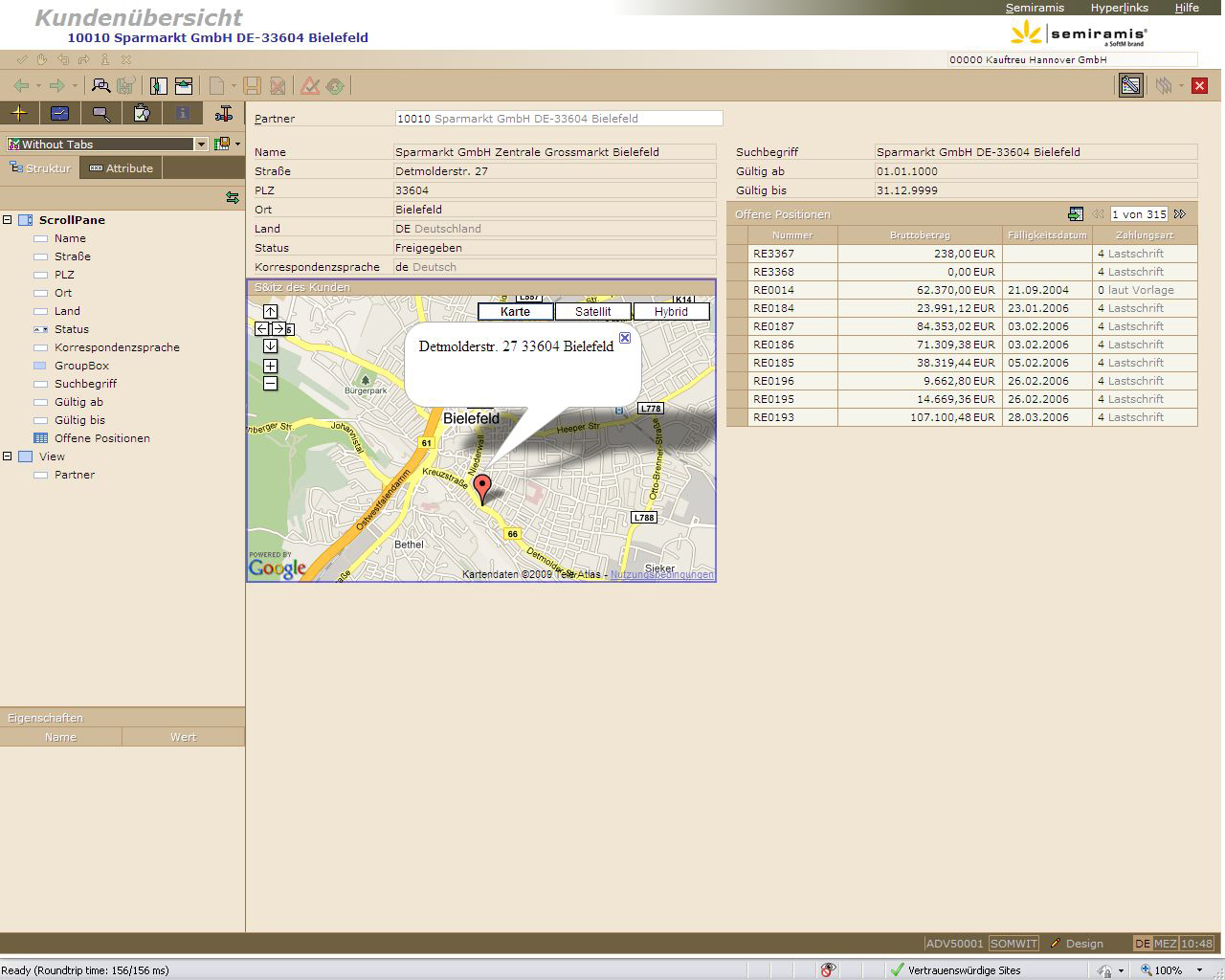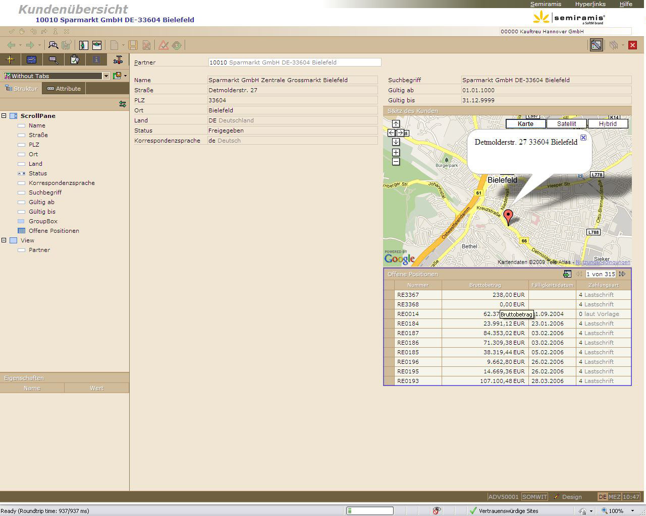 Eine andere wichtige Neuerung ist die erweiterte Anpassbarkeit der Oberflächen. Das Verschieben sowie die Neuanlage von Feldern kann von den Anwendern selbst vorgenommen werden. Abgerundet wird die Flexibilität durch anpassbare Cockpits. Auf der CeBIT wird zum Beispiel ein Customer Dashboard mit den wichtigsten Informationen und Kennzahlen zu einem Kunden gezeigt. In solche Dashboards lassen sich auch Webservices wie z.B. Google Maps einbinden. Mit neuen Mashups lassen sich kontextbezogen zusätzliche Fenster öffnen, um z.B. während der Auftragsbearbeitung Infos zum Kunden einzublenden. Das Design der Oberfläche wurde durch neue Icons, perspektivische Gestaltung und Farbverläufe weiter aufgewertet.