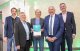 Preisverleihung des Josef-Grünbeck-Preises 2025: (von links) Dirk Lambach (AGP), Jürgen Weißenburger (Kuratoriumsvorsitzender Loni und Josef Grünbeck-Stiftung), Claudia Henke (Platform Coops eG) mit der Urkunde, Dr. Günter Stoll (Grünbeck AG) und Prof. Dr. Thomas Steger (AGP) bei der feierlichen Übergabe in Höchstädt