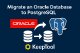 Banner showing the migration from Oracle Database to PostgreSQL, with Oracle and PostgreSQL logos, database icons, and the KeepTool logo, illustrating structured database migration.