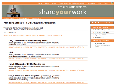 Mit Hilfe von ShareYourWork können in einem Projekt Teams und Aufgaben zusammenstellen und so die Kommunikation vereinfacht werden. Es wird keine Email mehr benötigt! Nutzer können von überall über das Internet auf ShareYourWork zugreifen und Aufgaben mit anderen teilen. Die Kommunikation mit Ihrem Team erfolgt online. Aufgaben werden an einem Ort verwaltet und können von allen Teammitgliedern jederzeit bearbeitet werden. Die einzelnen Abläufe werden in Form von Geschäftsprozessen beschrieben und in einem Projekt abgebildet. Ein Projekt kann alles sein - der private Umzug, der Ausflug mit dem Verein oder die Organisation eines wichtigen Kundenprojektes.