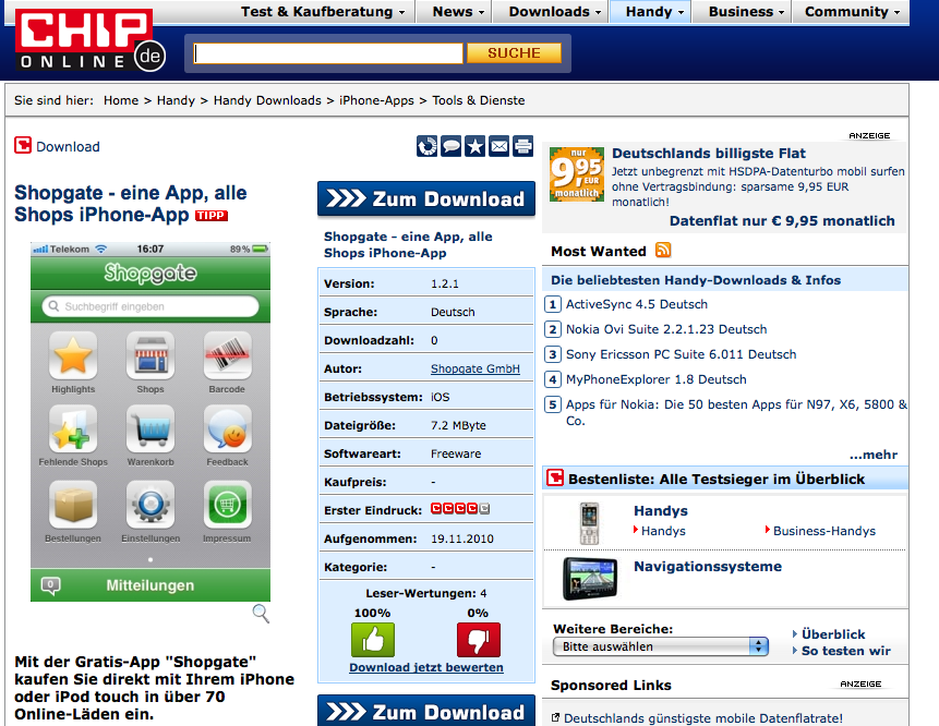 Im Oktober 2010 wurde die Shopgate App von der Deutschen Telekom AG zur App des Monats gekürt.