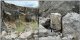 Abbildung 1: Kleinbergbaugrube in Fonlo (links), die den nahezu vertikalen Kontakt zwischen Metabasalten und Pegmatit zeigt (dunkel bzw. hell gefärbt). Spodumen-Kristall in Fonlo (rechts).